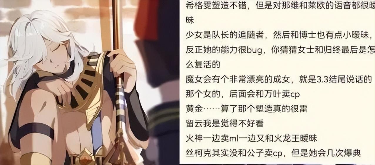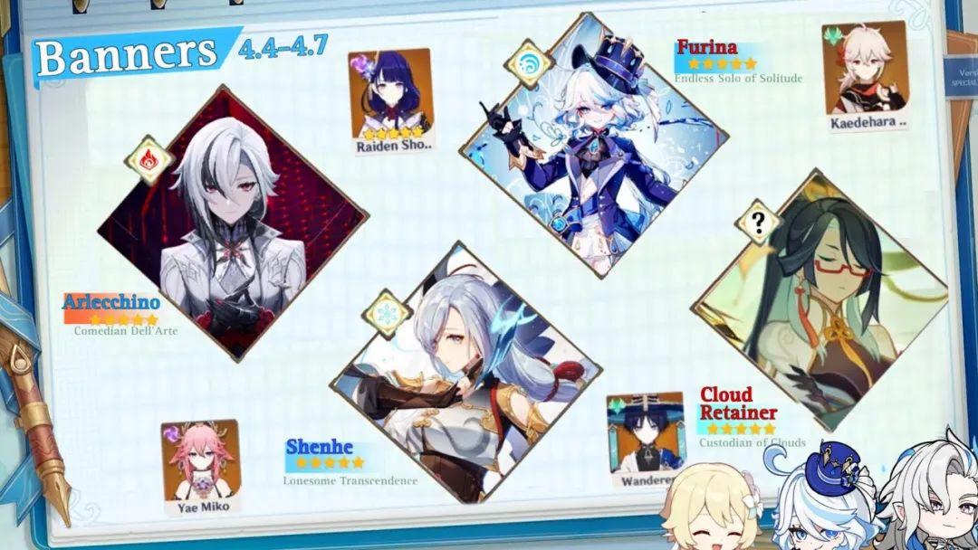 4.5是草神+散兵双复刻,不过是放在下半场,前半场还是枫丹的主场,包括千织和希格雯。千织已经被确定是泛用的岩辅助,可以绑死娜维娅,至于老旧的岩角色,是可以稍微吃到红利,因为6命的千织可以对标珐露珊。4.5上半是千织+希格雯;下半是草神+散兵。