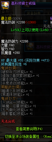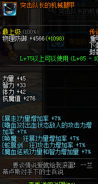 如图,机械腿甲加的属性简单暴力,除异界6外是剑魔玩家必备的强力换装散件。