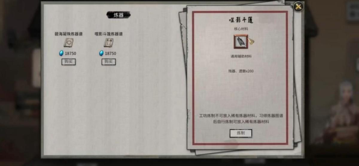 首先我们要前往各个主城的工坊,进入工坊后选择炼器,在制作法宝之前玩家还需要器谱,器谱玩家可以在炼器时购买。