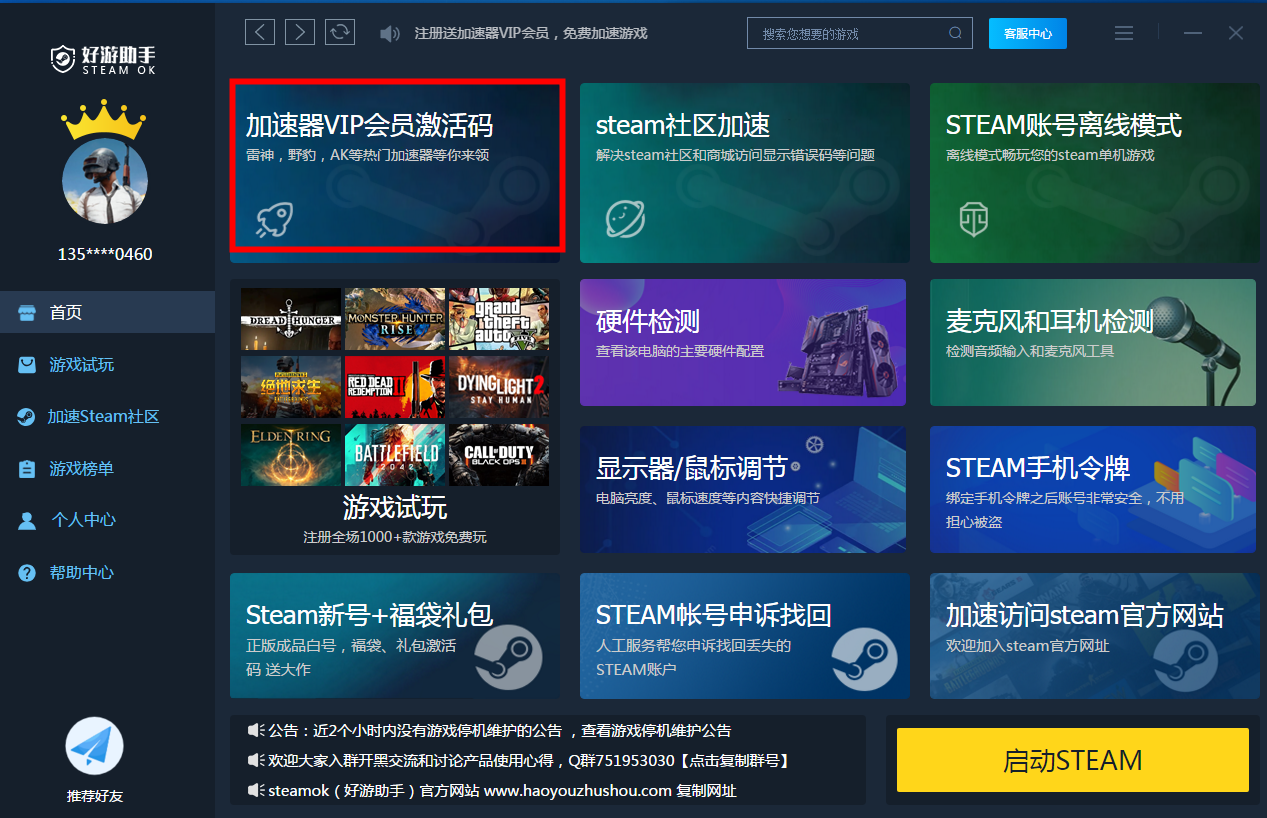 下载安装后,点击游戏商城,免费领取加速器(记得不玩的时候按暂停加速哦),登陆加速器选择对应的游戏加速!