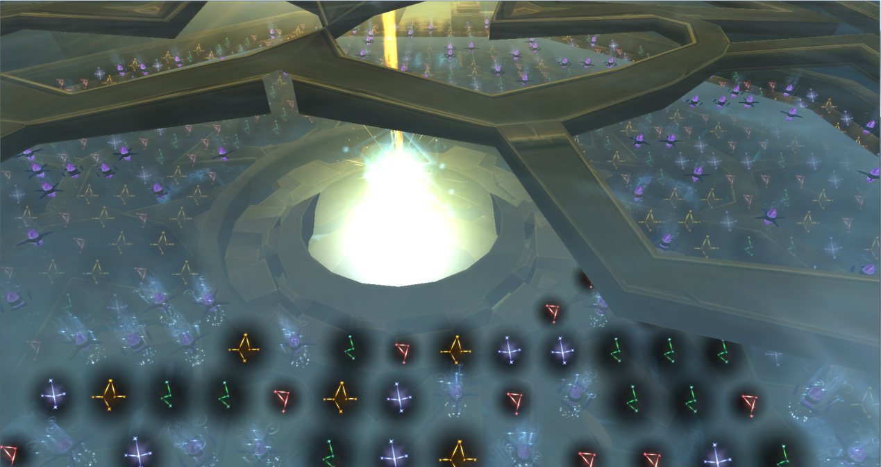 黄色线是一座金字塔,这让玩家想到了奥丹姆地图上位于金字塔中的副本起源大厅,在副本中玩家们发现在佩戴了”正牌寻宝护符”后在副本中的电梯处可以点击电梯下面发光的东西,然后出现一些星座符号,并且会有一些可以点击的按钮。显然,要开始让玩家们绞尽脑汁的想如何去完成这个解密游戏了。