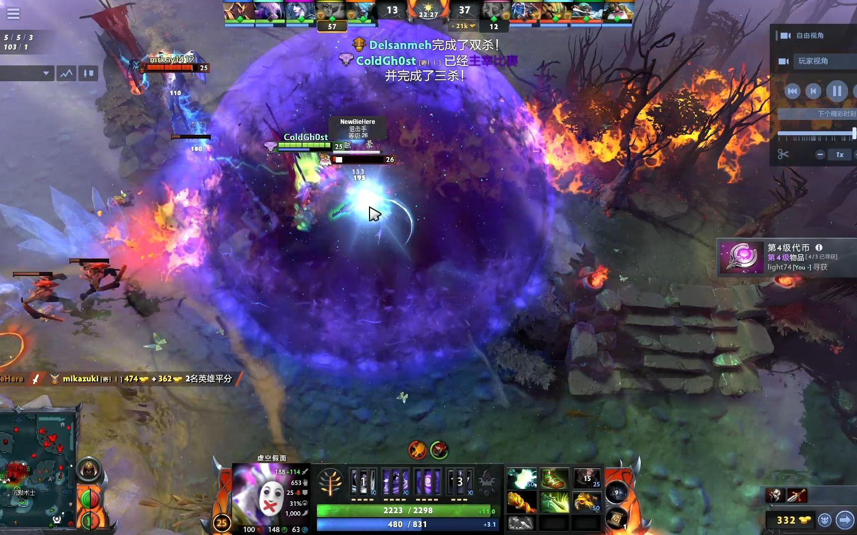 还有一个问题在DOTA中英雄存在克制关系,比如敌法师克制一姐美杜莎,幻影长矛手克制TB,山岭巨人被恐怖利刃克制。但是虚空假面在如今的版本,单挑虽然还算最强的那一梯队,虽然成型比其他核心慢,没有打钱技能,也特别吃BKB跟大招,可是后期六神甚至7神虚空几乎没有天敌。