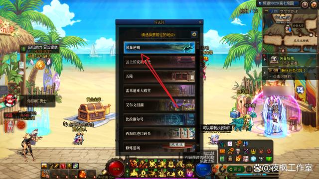 一旦传送面板被打开,你需要在面板菜单中找到并双击”风暴逆鳞”的选项。