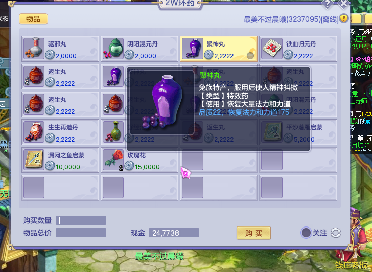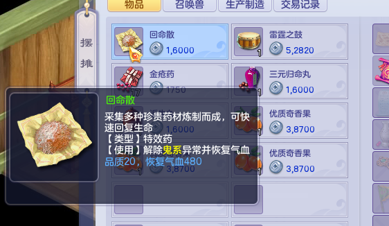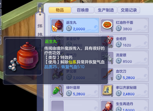 而返生丸、回命散这些药物也比较重要,这几种药是能够解除不良状态并回一定的气血值,对于一些没有对应的解控技能的流派来说是很有必要的,尤其是在1v1对战时,更加重要,做好充足的准备,才能使你在对战中不会处于被动状态。