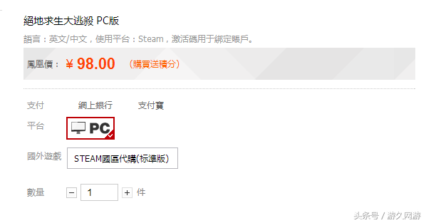 这是一张某网站上steam平台的《绝地求生》购买页面,其实对于一款体验超棒的游戏大作来说,对比其他steam上的游戏,98元的价格称得上非常良心了。但是以中国消费者常年养成的习惯来说,需要先购买的门槛已经挡住了一批人。