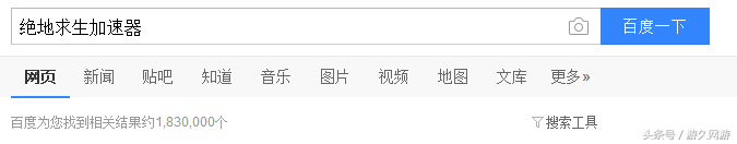 第二个原因就是在中国玩《绝地求生》,需要连接远在韩国的服务器去玩亚服。在百度上搜索“绝地求生加速器”的关键词,可以看到相关结果约有183万之多,可见对于“吃鸡”的玩家们来说,用不用加速器和用哪个加速器已经成为了进入游戏前最大的难题。即使已经买了《绝地求生》的玩家也很可能因为这个条件退游。