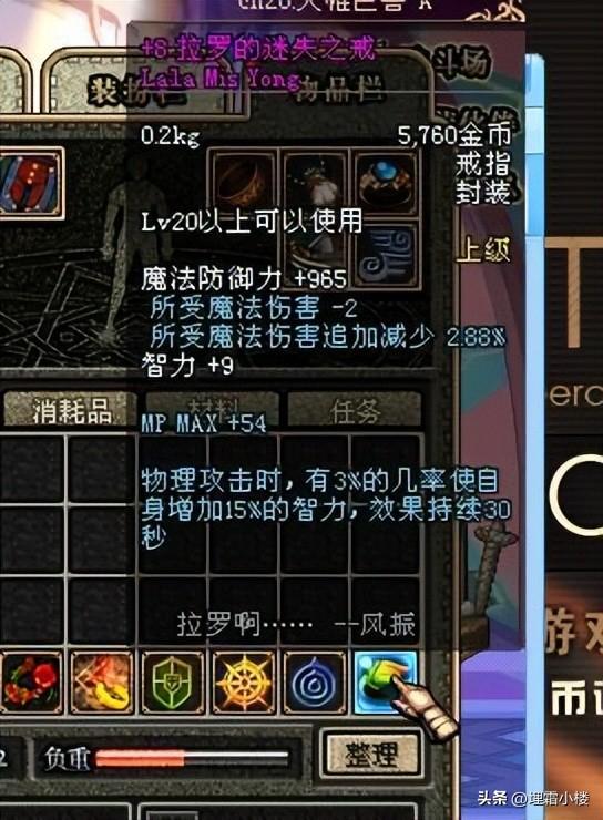 这个戒指在很长一段时间里都是法系职业的首选,用魔法攻击时,就有几率提升8%智力,并且触发特效还能叠加2次。由于当时法系职业还算冷门,以至于这枚戒指的价格并不太离谱。如果将智力变成力量,那要卖多少钱,让人不敢想。