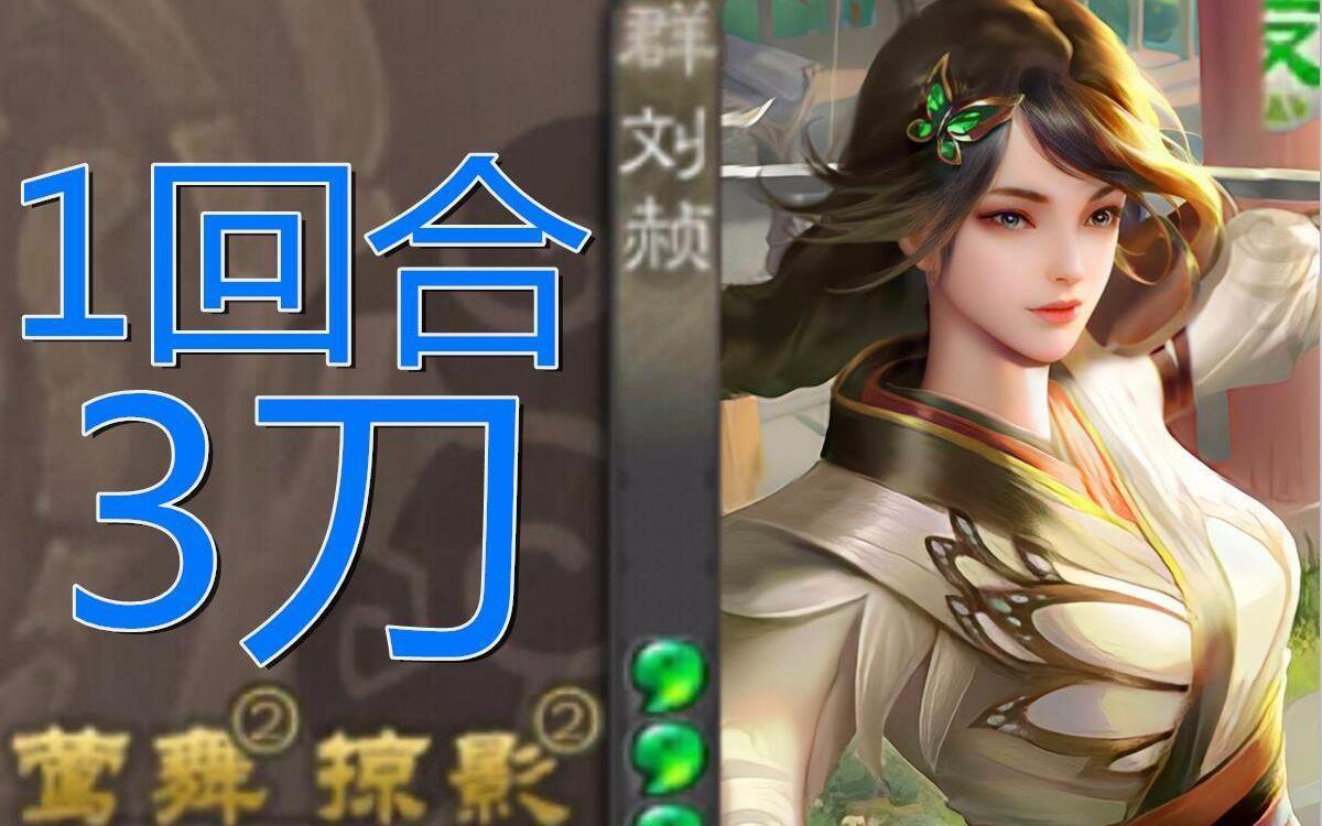 假设谋刘赪已经有1个标记,出牌阶段使用锦囊牌触发【莺舞】杀1次,然后使用手牌【杀】一次,累积1个标记,然后再使用锦囊牌触发【莺舞】,如此就是3刀。简而言之就是【锦囊】、【杀】、【锦囊】。