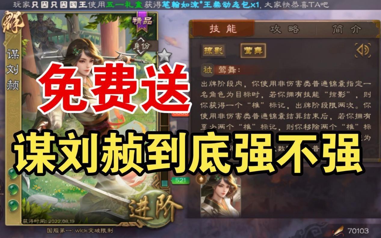 大家好,我是戎马定半生。众所周知,三国杀移动版中最良心的活动就是群英绘壁,该活动免费送谋武将,个个实力强劲,只需要每天玩几局就行。无论你是否经常玩三国杀,但谋刘赪这个武将想必大家都有。但在实战中,很多玩家玩谋刘赪更白板武将一样,根本打不出爆发伤害。所以今天就详细给大家讲讲,谋刘赪如何打出爆发伤害。
