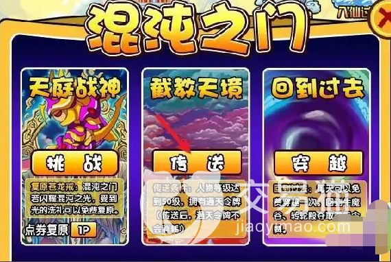 仙音岛大家要是想参与的话,首先需要找到其中的混沌之门,这个地方大家打开地图就可以看到,找到混沌之门以后你可以选择挑战天庭战神、截教天境还有回到过去几个副本,这里大家需要选择的是截教天境副本。