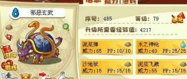 当时最难捕捉的宠物——邪恶玄武,捕捉难度五颗星。当时的捕捉难度是以星星为基准,五颗星为难度最高,现在则以百分比的数字表示捕捉难度。