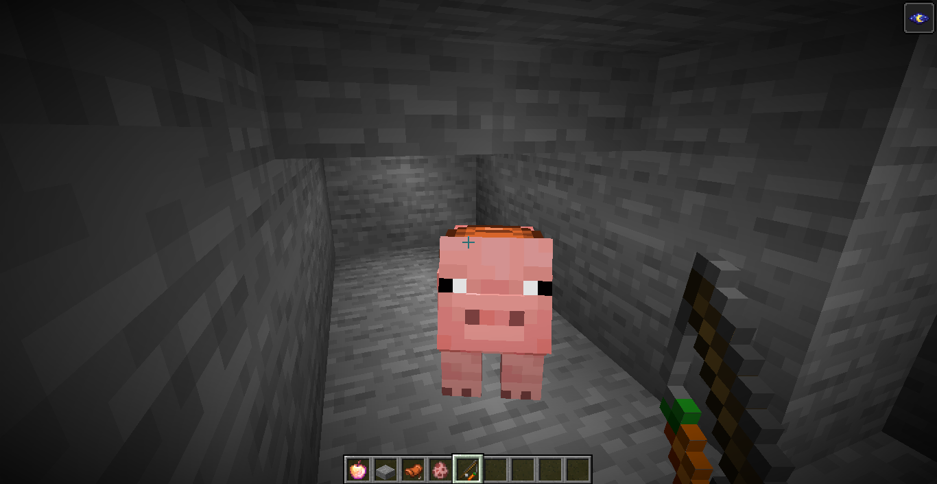 方法很简单。你只需要准备一头猪,一个马鞍,一根胡萝卜鱼竿。然后我们到地下,挖了一个两平方深的空间,最后在顶楼铺了一层半砖。然后骑着猪,往半砖方向走,史蒂夫的视角就会卡在半砖中间,这样就可以实现卡片视角了!