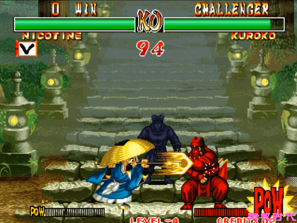《真侍魂》最搞笑的晕点则是来自黑子,他的超必杀技命中对手之后,先将对手打晕,喘息之后再接上最后一击。不少玩家都尝试过,在被打晕之后拼命摇摇杆,最后发现是徒劳的,无法醒来。