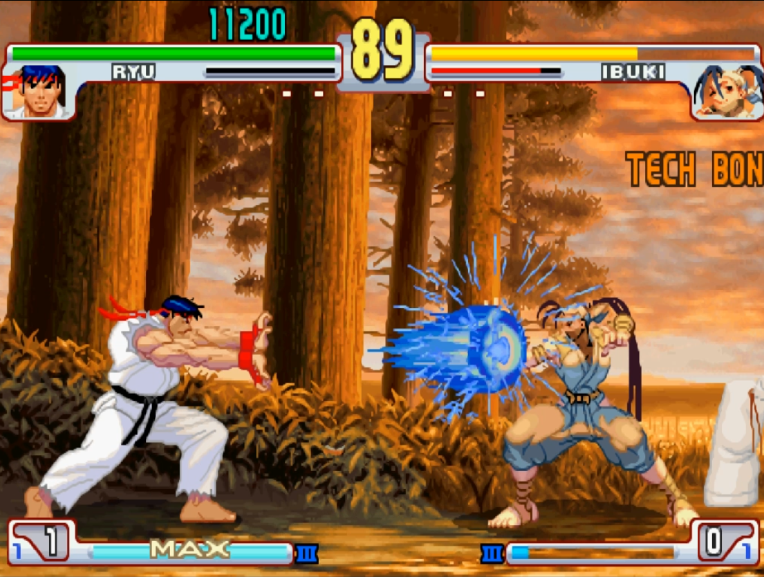 《街头霸王3》时期隆的“电刃波动拳”在蓄力满了之后可以直接将对手打晕。这一招经常出现在实战之中,将对手打倒之后马上蓄力使用,就算没有蓄满,也能打出不少的晕点值。