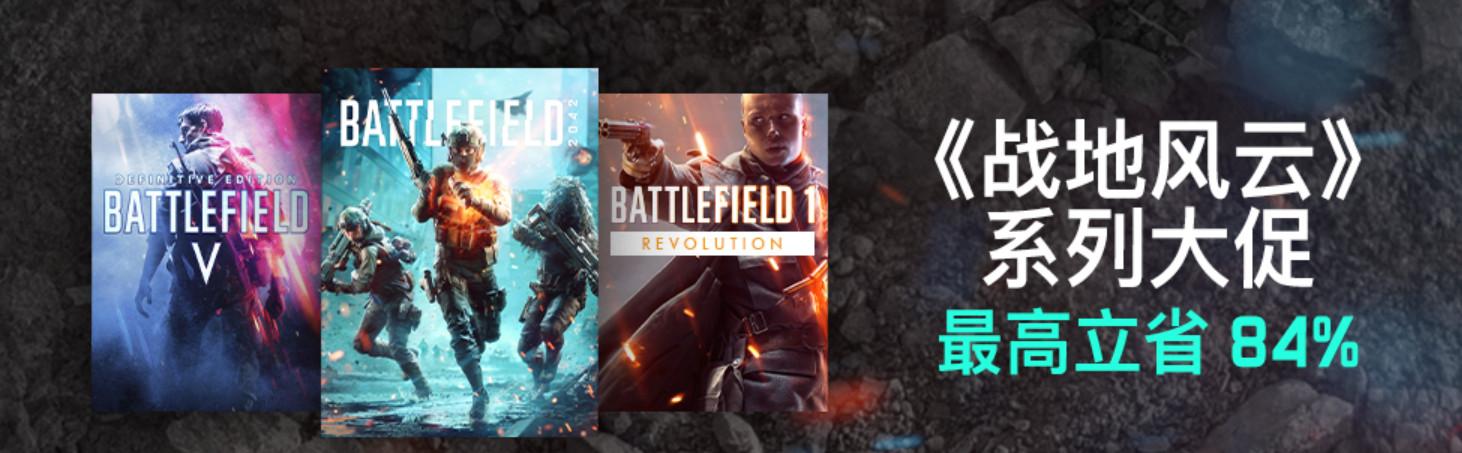 用折扣价入手《战地风云2042》、《战地5》、《战地1》革命版等游戏