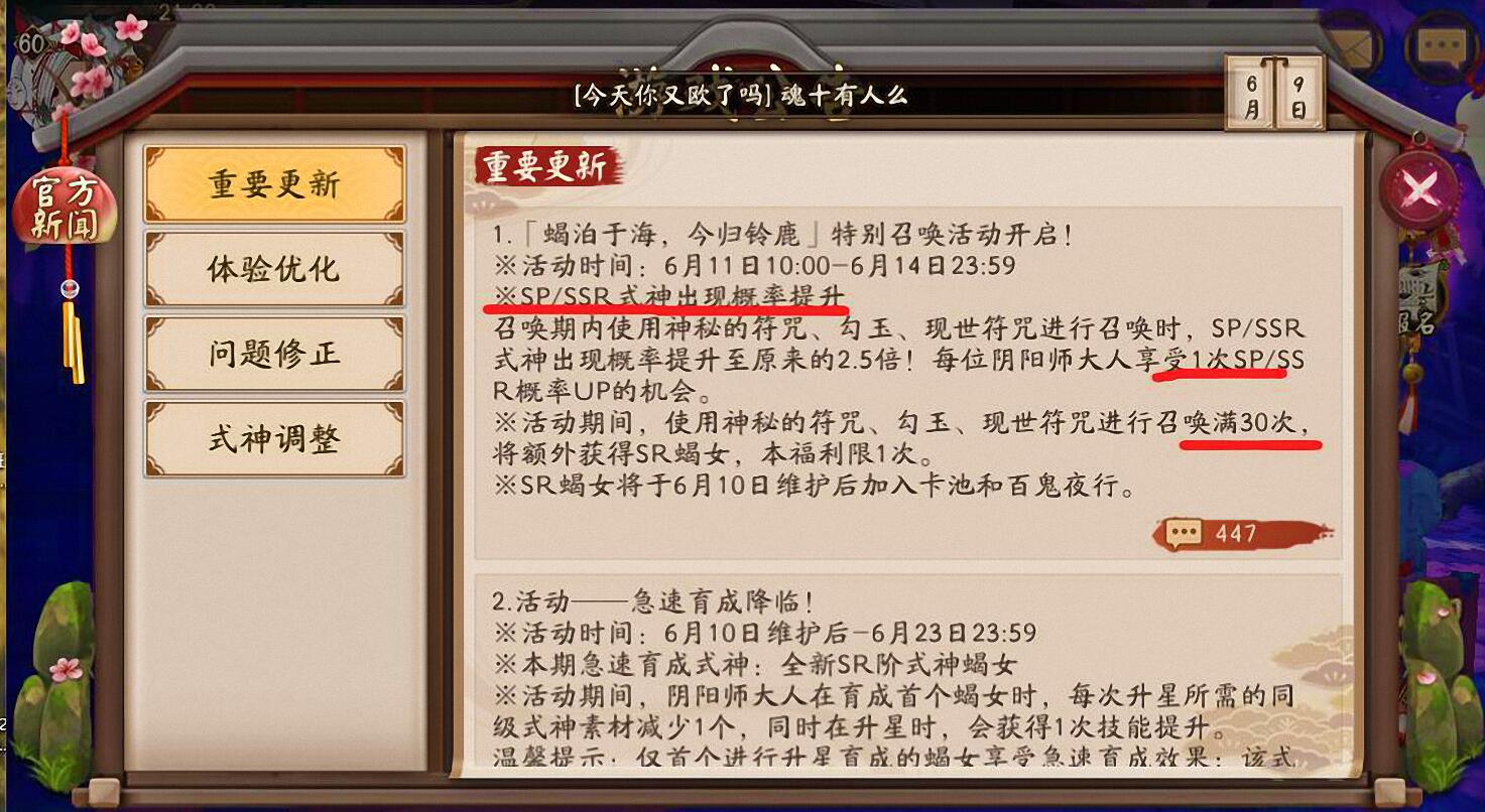 因此官方在本次的活动当中还附加了一次SSR,SP的概率up,这样既能抽出SSR或者是sp还能在抽满30抽的时候就可以获赠一只蝎女,蝎女这个式神,她的技能是非常强的,也是一个打间接伤害的式神,更何况在本次的活动当中,蝎女还有一个养成的buff。那么具体的内容还是接着往下看吧。