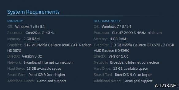 显卡需求:1 GB Nvidia GeForce GTX 550Ti / AMD Radeon HD 6790