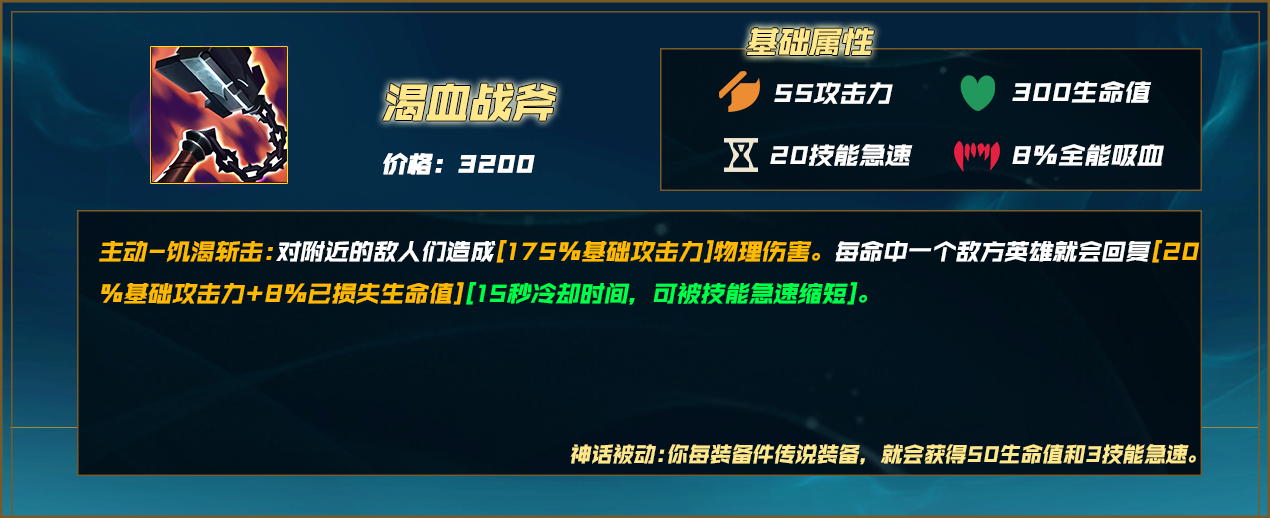 咳血依旧是最适合我们这种重装战士的装备,提供CD,攻击,生命值以及残血情况下的一大口回血。