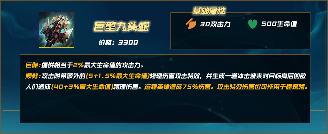 后续可以做巨久,凭借我们的高血量和W的攻击特效,最大化巨九的伤害。