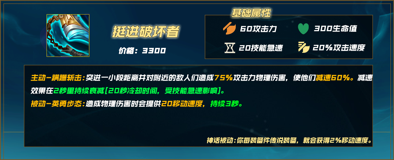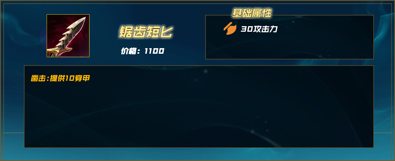 做出挺进后,如果优势足够大,可以把锯齿短匕合成公里圆弧。公里圆弧是所有刺客装里属性最好的,55攻击力,18穿甲,25减CD,还能给大招减CD,是刺客装里滚雪球能力最强的,一波团甚至能开出三个大招。