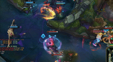 如果对方前排是石头人,塞恩奥恩之类又臭又硬的英雄,我们就优先尝试突入后排,击杀对方C位或者给对方输出压力
