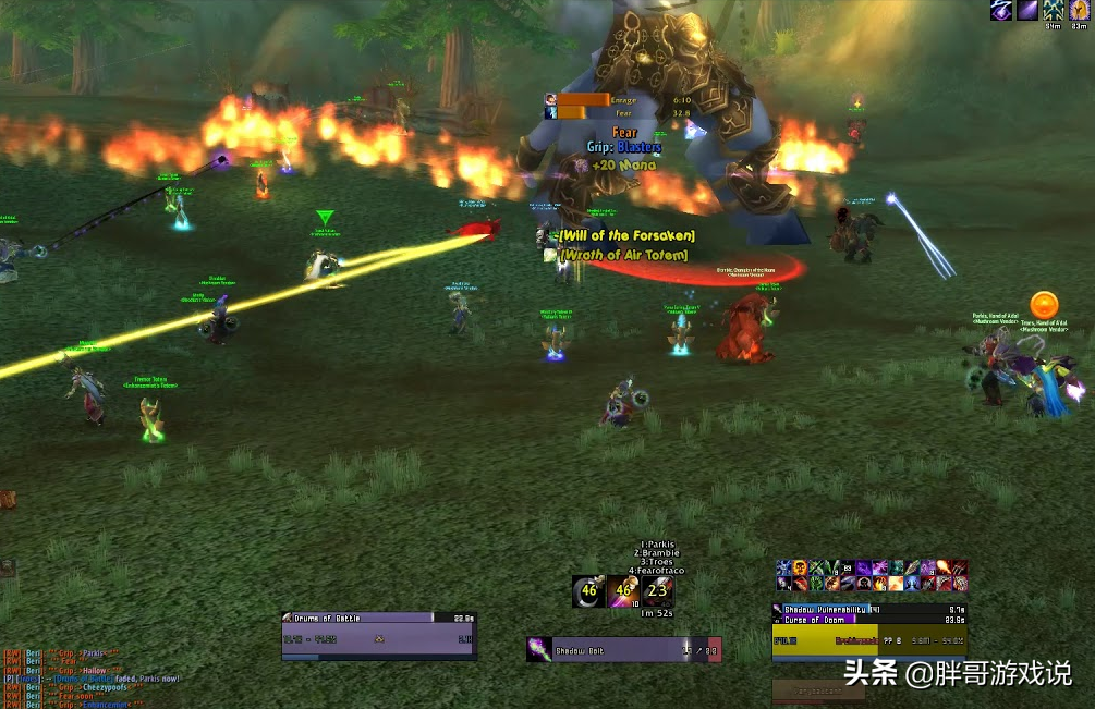 “恐惧咆哮”是一个全团恐惧技能,会有1.5秒的读条时间。最好的应对方法就是安排萨满提前使用战栗图腾,如果团队内的萨满不足的话,可以安排牧师给当前坦克上反恐。