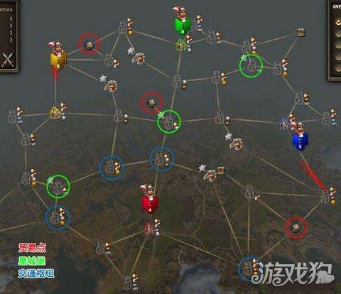 红色为贸易点,很显然属于共享型的贸易点,无法控制。所以一定要尽早占领附近据点,开通你需要的贸易路线,否则别人开通了你就无法使用。