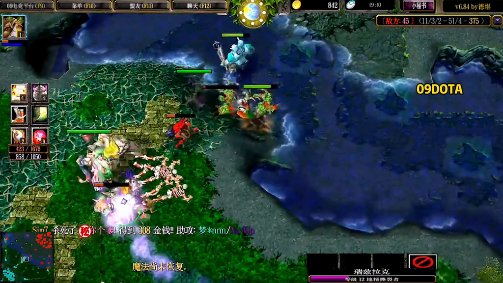 这个人居然还想给我补,居然还想给我一个组装家大宝给秒了,再给一个飞盘耗一下血。有挑战的刚被回血确实是比较快的,这波虽然有密法加魂戒,还是把自己的蓝量给打空了。不过这波杀了两个人,牵扯出来不少空间。