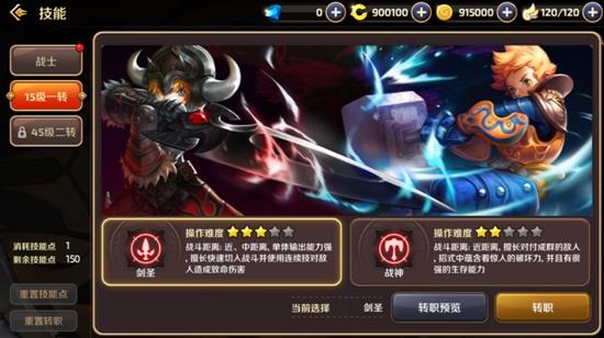 战士到达15级时进行一转类似端游也是有两个选择,分别为剑圣及战神