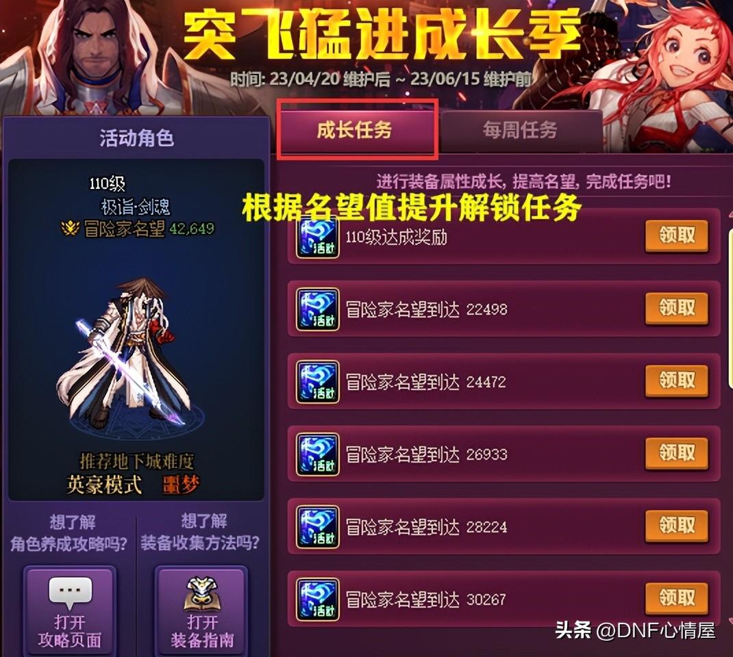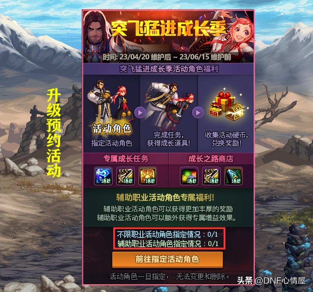 对于重新起号,1级开始创建的角色来说,确实不太适合。这次活动侧重点变了,不在于“升级”,而是角色打造方面的“养成”。当指定角色后,能够激发“成长任务”和“成长之路”,两个方面的道具奖励。
