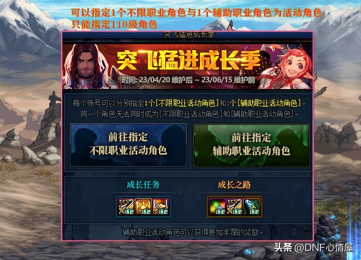 本次耕耘版本,“突飞猛进成长季”升级预约活动,可以指定1个【不限职业活动角色】和1个【辅助职业活动角色】,但注意了,只能指定110级角色。什么意思呢?要想参加这个活动,必须是满级!