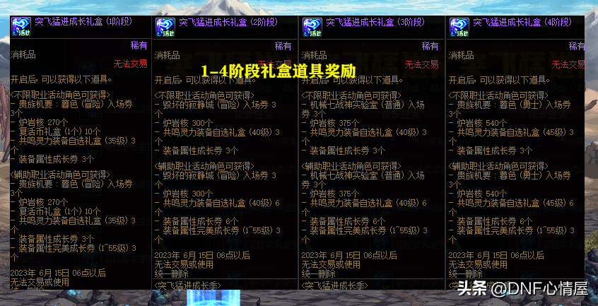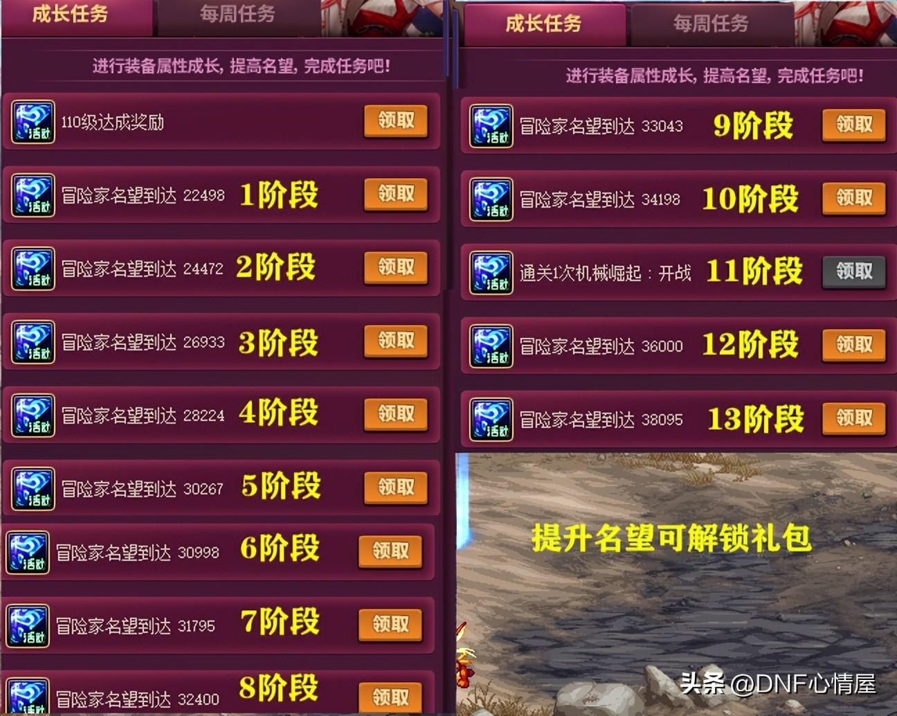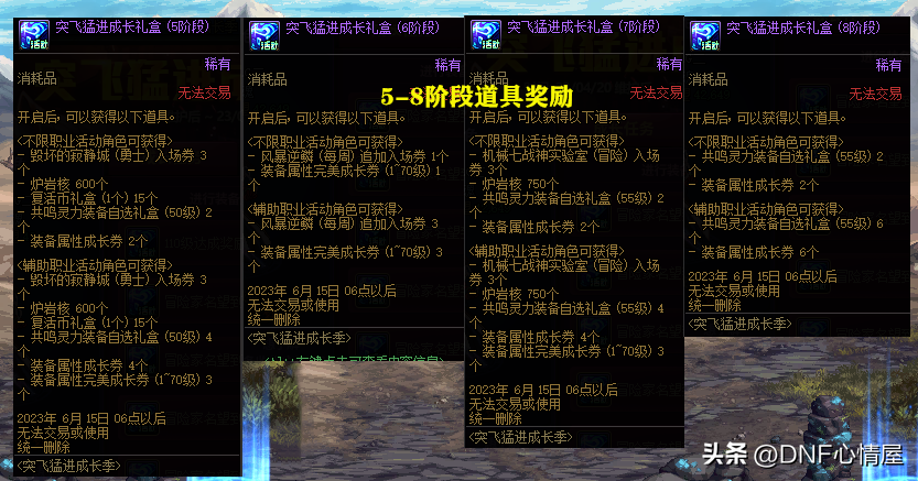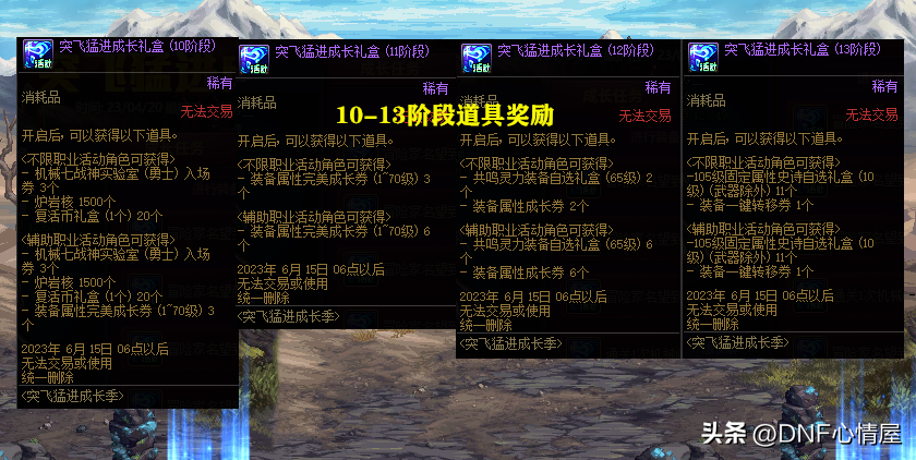 【2】1-13阶段成长礼盒。在“成长任务”中,可获得1-8阶段成长礼盒,由于阶段不同,给予的奖励道具,也会存在着差异。