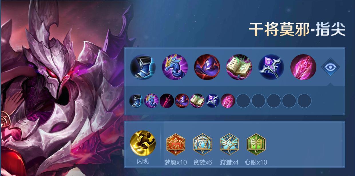 目前干将莫邪的出装基本上都是这一套,秘法之靴增加穿透以及续航(前期出太早会导致穿透溢出),回响之杖出来后有了伤害再买小专精装,之后博学者之怒加贤者之书猛堆法强,后期搭配被动的法强会非常夸张。