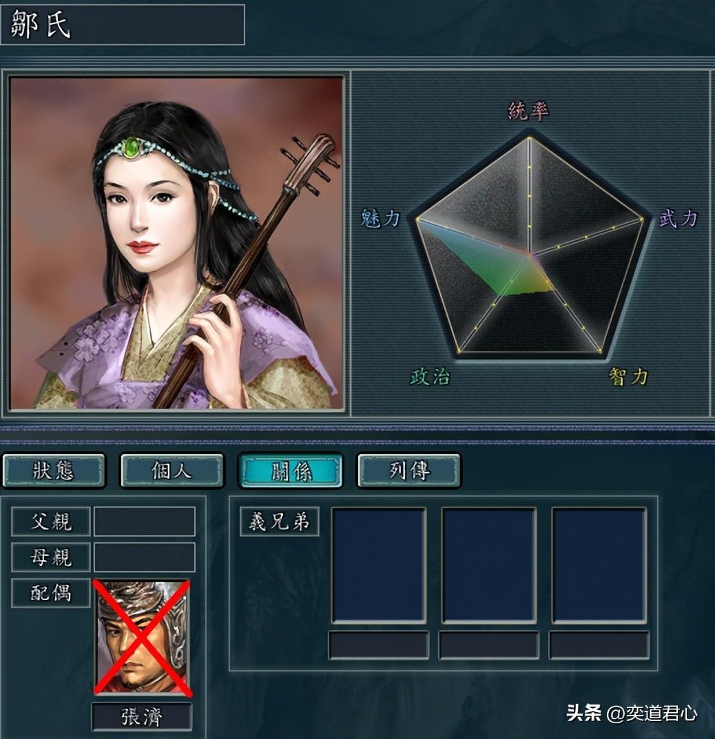 挨刀指数最高的,肯定是身无长技的张济了。虽然曹操有媳妇,但他依旧对于邹夫人有浓厚的兴趣,还得陇望蜀惦记江东二乔,说白了就是想要集齐一支女团乐队。三国志11游戏的各种战法和计谋都离不开气力,而奏乐是最直接补充气力的方法,可以说是个男人都无法拒绝,张济在这里面没办法主动申请离婚,就只能被强行下线。