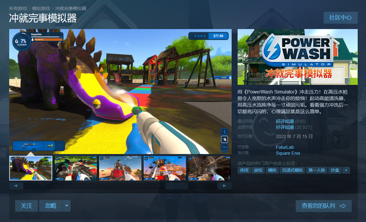 《高压水泵模拟器》是一款由FuturLab开发,Square Enix在Steam上发行的休闲且解压的清洁工模拟游戏。