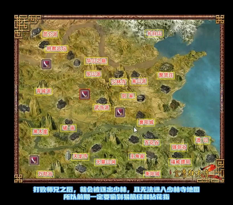 选择2打败师兄后就会被逐出少林,这里选择打败师兄,打败师兄之后,就会被逐出少林,且无法进入少林寺地图,所以前期一定要偷到易筋经和拈花指。