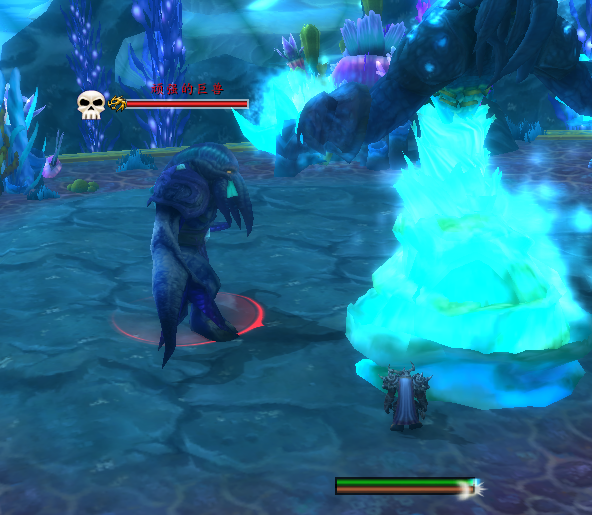 做法:宝宝被动状态,巨兽跳下来,让宝宝嘲讽他(玩家自动按键嘲讽),一定要控制好距离,刚好能嘲讽到,又没攻击到巨兽(30码),确认巨兽攻击宝宝后,这时我们就可以安心的单点其他小怪了,记住千万别再用技能,不然宝宝会地震,AOE到巨兽)