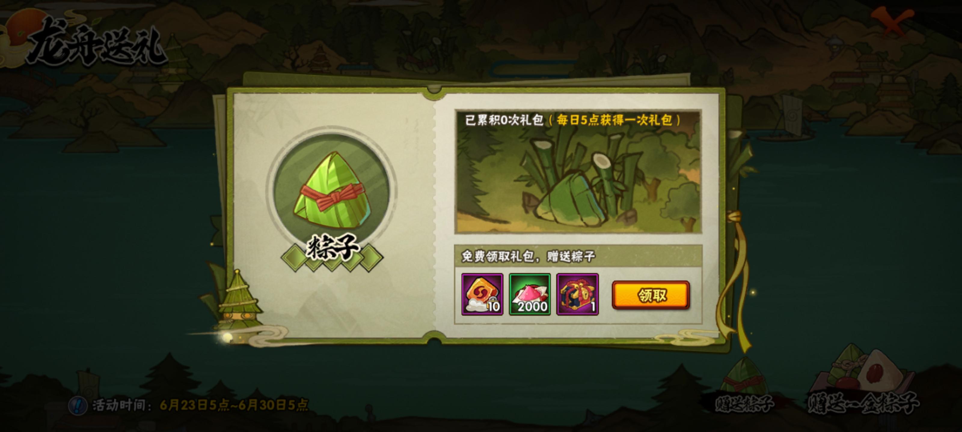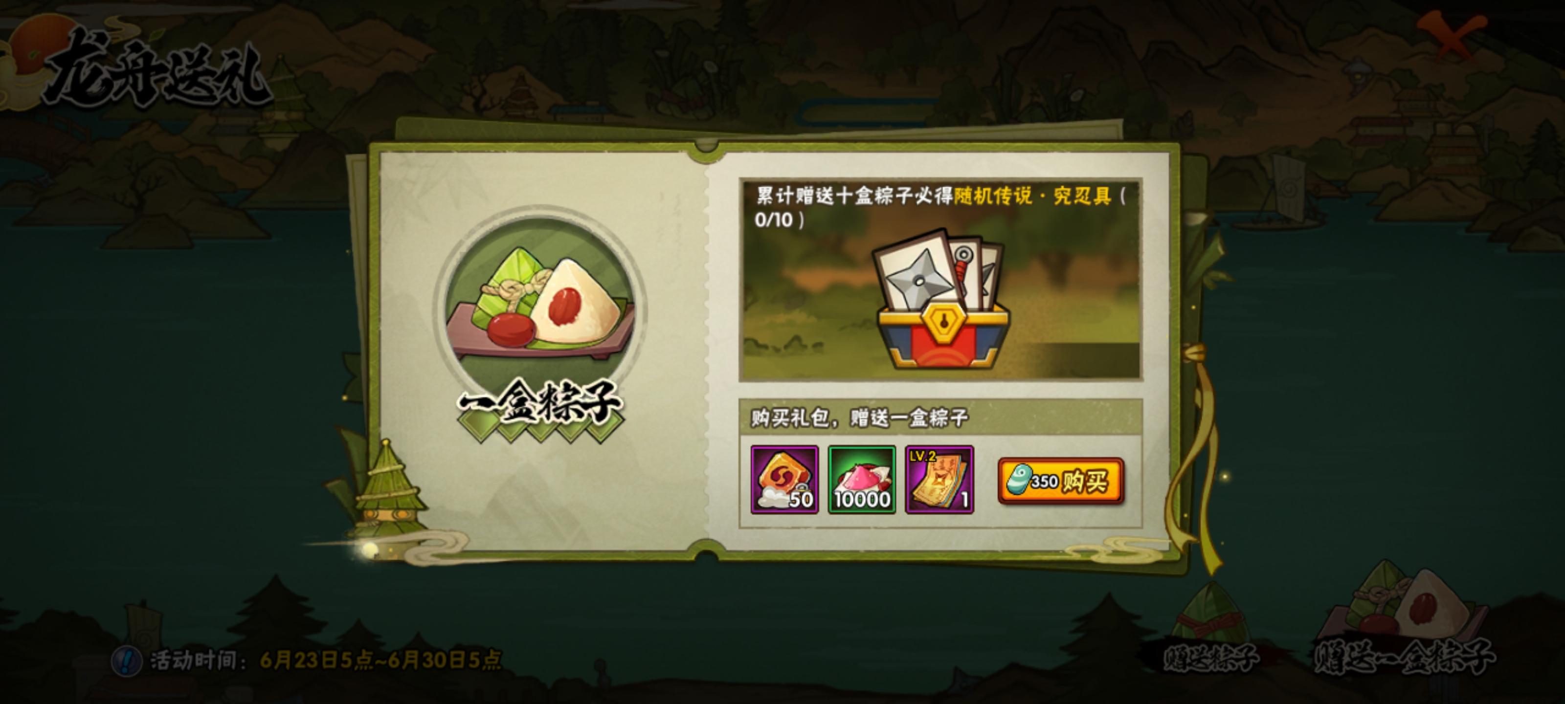 想要拿究的小伙伴不能错过!(一次350点券,十次送一个究,但是随机)普通玩家每天刷新送一次粽子即可~