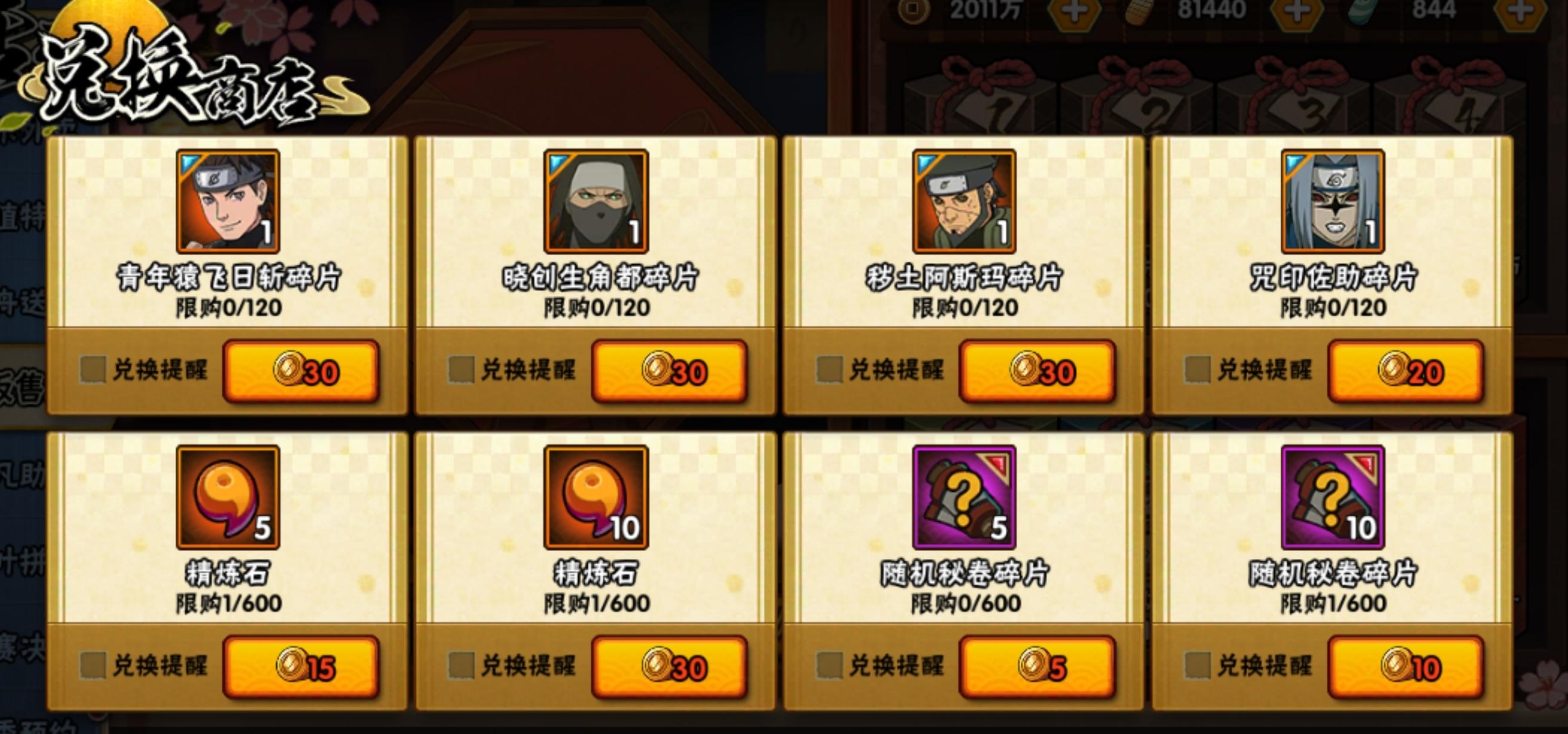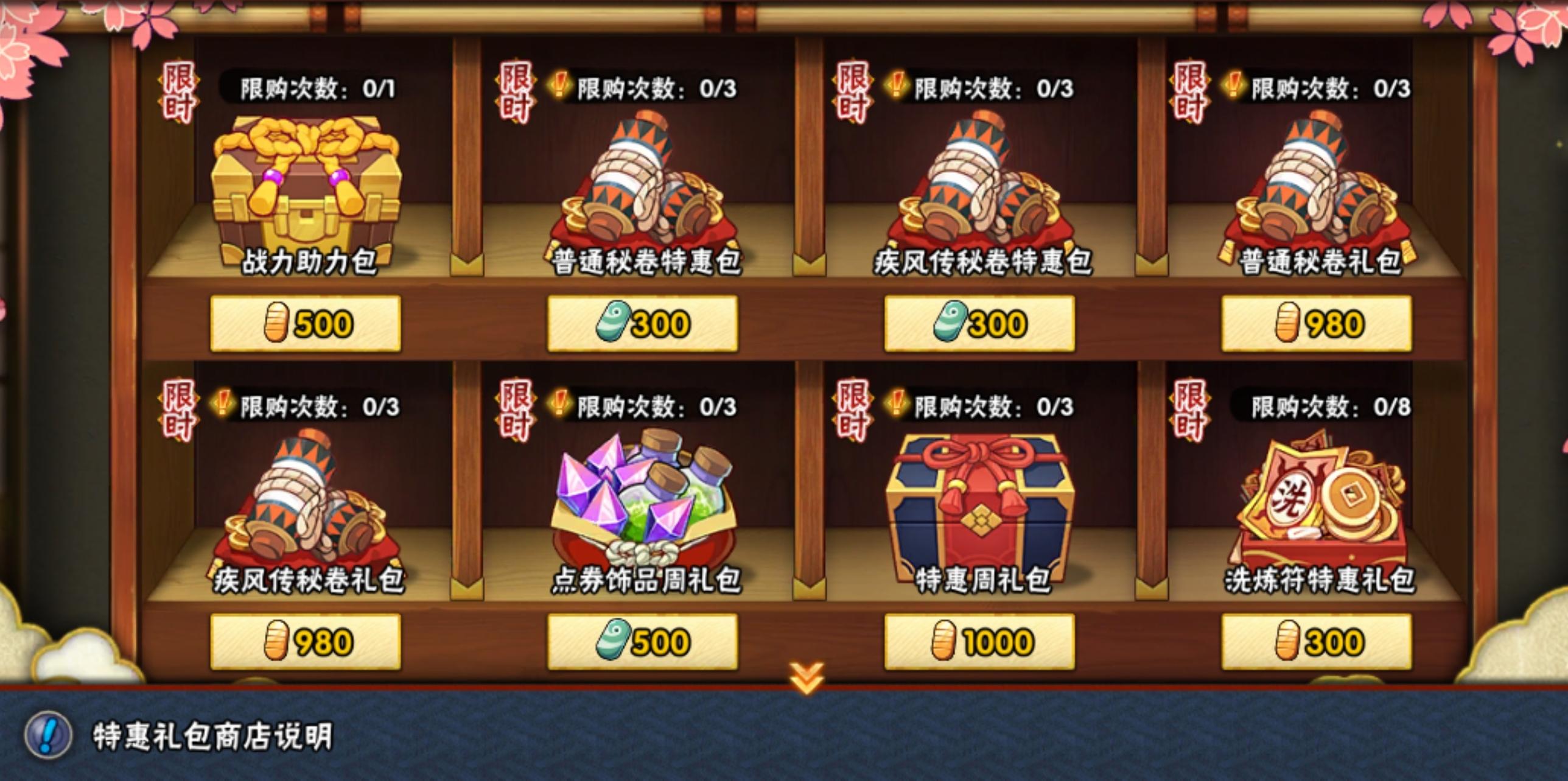 疾风传秘卷提升包:限购3次,50片 点券递增300/500/700,性价比不高,不划算不推荐!