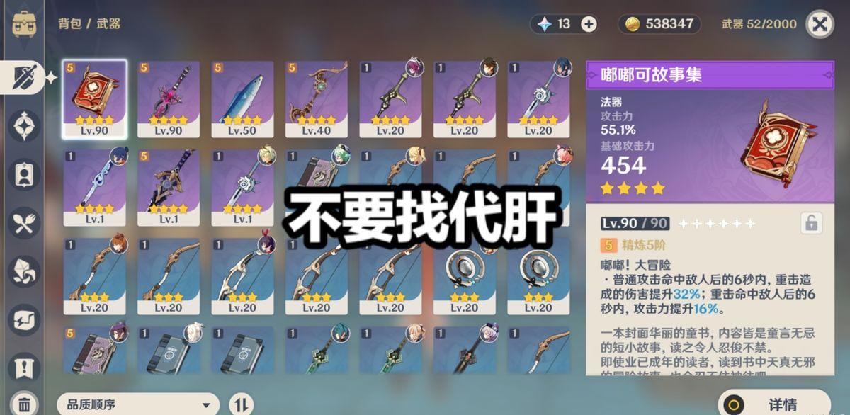 然而找代肝是有风险的,因为你不能确定那个代肝玩家的人品,就拿这位粉丝来说,自己找的一个代肝后,辛辛苦苦打造的原神账号就被【破坏】了,五星武器全部被用来强化低级武器,圣遗物只剩下一个4级的两星圣遗物,对于一个50多级的账号来说,这无非就是练度直接归0,因为圣遗物占据了伤害来源的70%,而武器占据了20%甚至更多,一个角色失去了这两样东西,怎么能打出伤害呢?至此,玩家基本宣布退游了,所以盟盟这里提醒大家,不要随便找代肝上自己的账号,你们怎么看呢?欢迎分享自己的看法,我是盟盟,咱们有赞再见!