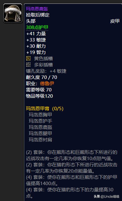 两件套装的优秀怒气值恢复以及4件套装堪称逆天的1400点的护甲加持都是非常的让人想要拥有,而且战士、牧师以及德鲁伊一般都是多系玩的,更加增加了头部T4的弥足珍贵了,所以前期的话可以优先考虑先入手我们的牌子装备野性怒火兜帽,性价比还是可以的,推荐指数满天星辰直戳天花板,我戳我戳我戳戳戳!