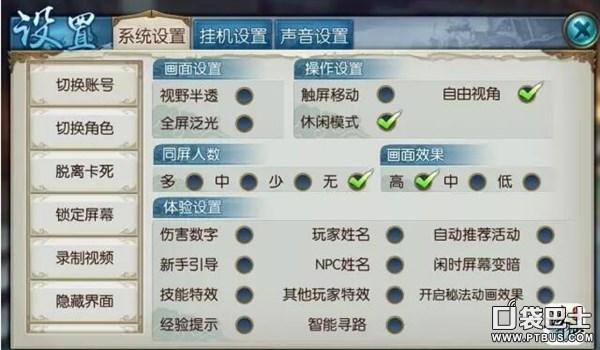 玩家姓名,NPC姓名,技能特效,其他玩家特效,触屏移动也不能勾选!