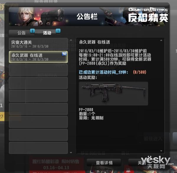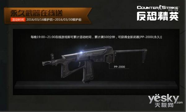 永久武器不用买买买,只要在线,免费送!活动期间,只要小伙伴们每晚19点到21点进行游戏,累计游戏时间达到500分钟,全新永久武器冲锋枪PP-2000免费送!