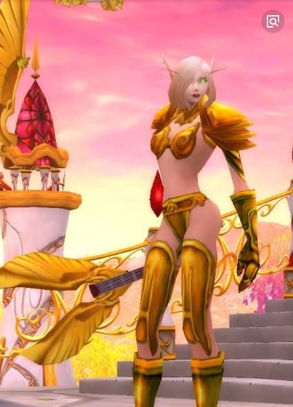 黑市掉落,有钱也不一定能买到,一般黑市刷出就被秒,只有土豪玩家才配拥有的幻化,模型是一把金色的吉他,牛头人乐队血精灵骑士同款。造型很美,女性角色拿这把武器配上光荣套幻化很美!