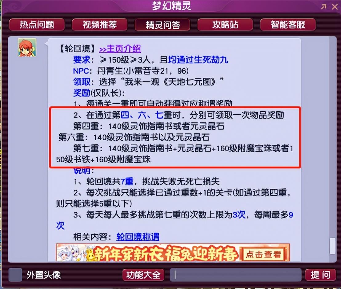 轮回境,一共有7重。成功通过第7重的话,就可以获得奖励。但是,迄今为止,只有1个队伍成功通过。重点是,还是在测试服务器内集齐了梦幻西游中5位顶尖玩家。而且还是在拥有无限药品的情况下,才侥幸通过!