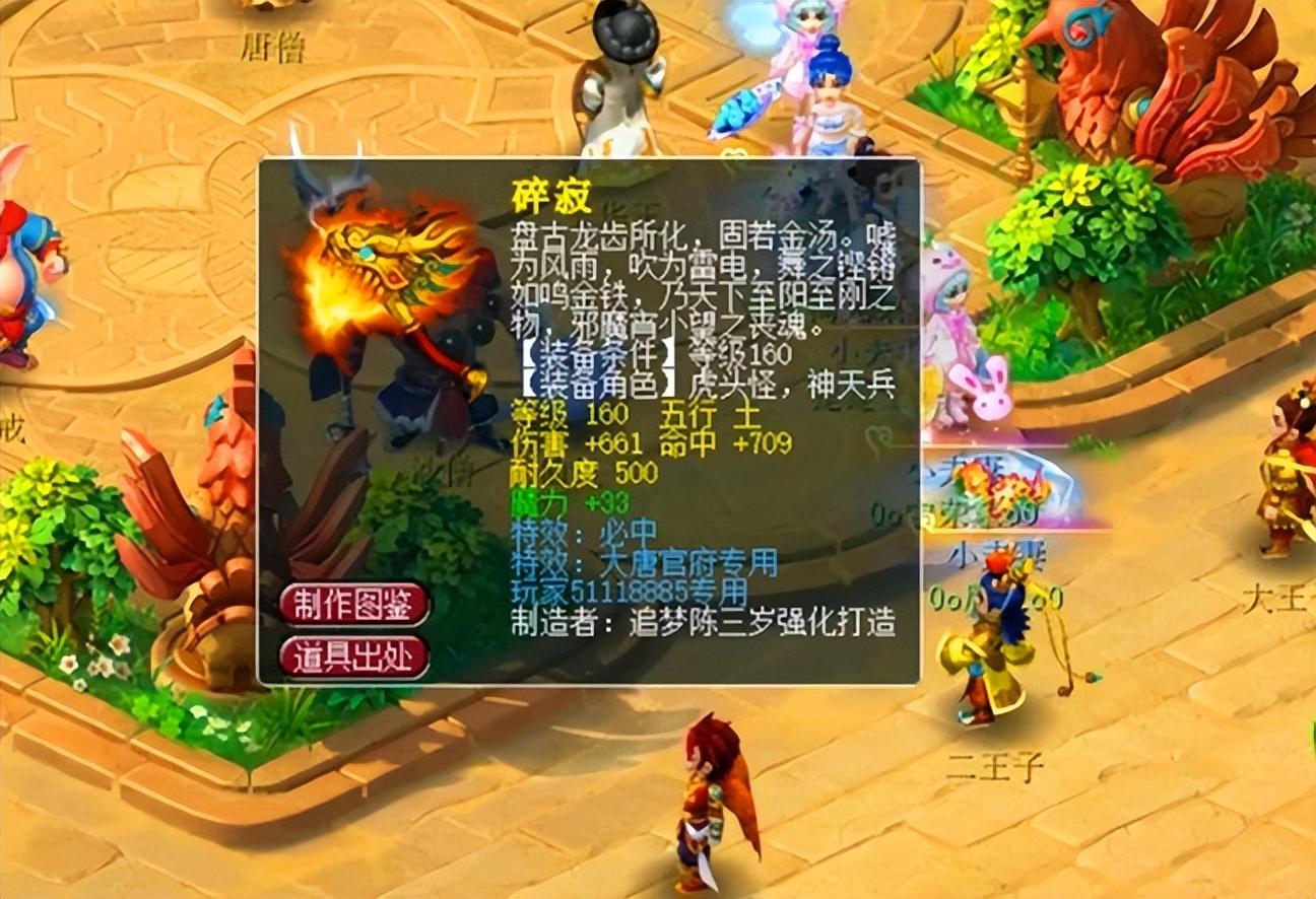 上面是一把160级的武器,上面这把160级的武器虽然增加了33点魔力,但是上面这把武器真的不是给法器使用的,上面的这把武器就是给地府使用的,原因是上面这把武器拥有着必中的特效,而且武器的造型还是锤子。鉴定出这把武器的玩家必须从大唐官府转到地府,地府使用上面这把武器的时候,因为拥有必中特效的原因,在pk中使用百爪狂杀是能够被增加10%的伤害。