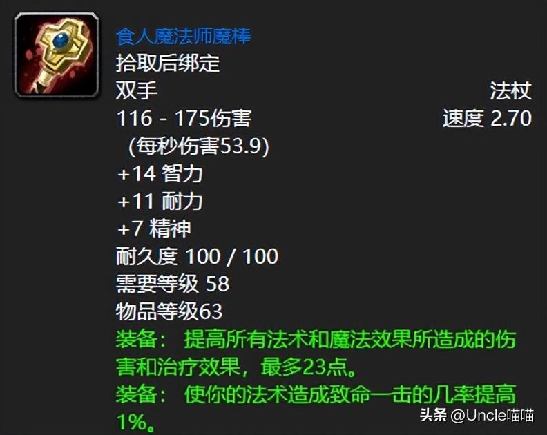 60版本第二阶段的戈多克贡品掉落的食人魔法师魔棒绝对可以说的上是无数小号亦或者排骨人的情怀了。毕竟只要你一满级,随便找个猎人大佬带刷,花上几个金币就能直接开启团本之旅,那感觉别提多舒服了。喵叔的小法师浠瓦就是扛着这丫的一路吃尽熔火之心和黑翼之巢的排骨,直到祖尔格拉布开放后才换,堪称是排骨人最刻骨铭心的极品法系输出武器了吧!
