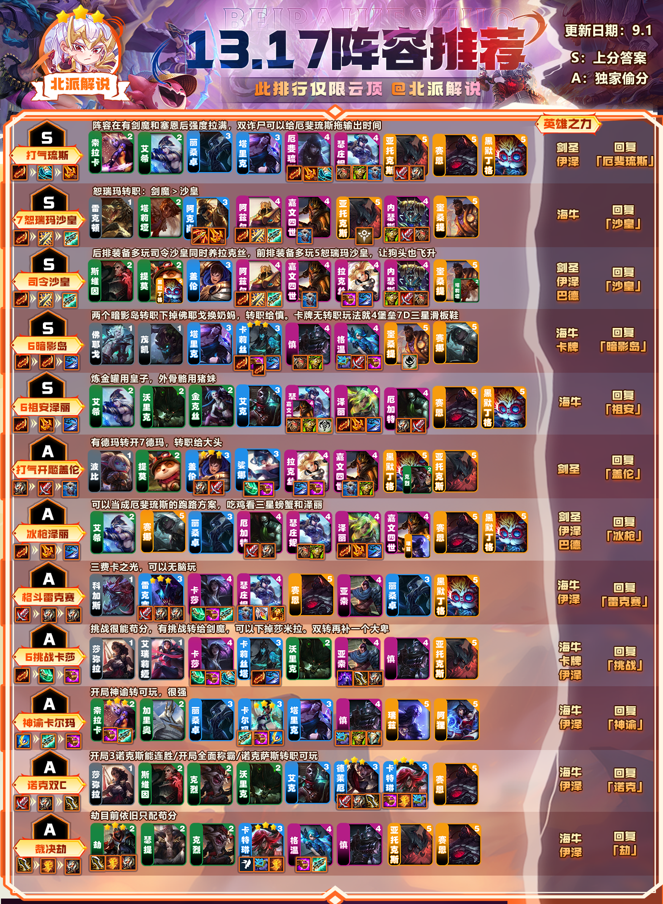 北派工作室近期在测试、整理S9.5强力上分阵容,陆续为大家推荐