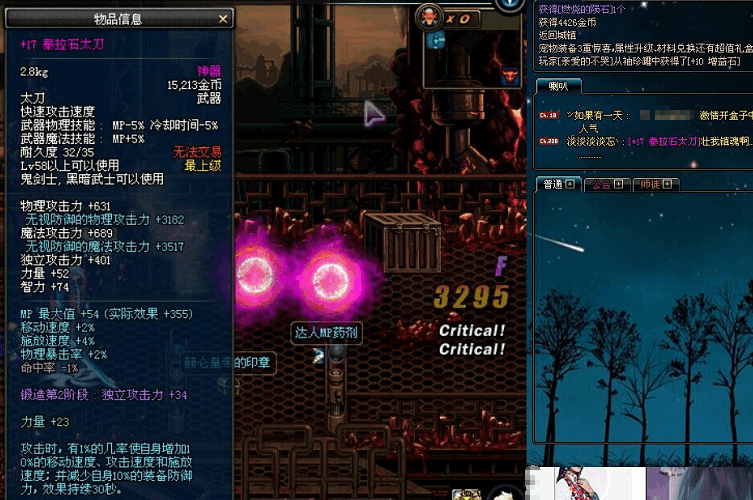 这把泰拉石太刀在国服基本上属于第一珍藏品,应该没有其他的泰拉石武器能超越,一把强化18的泰拉石太刀,国服仅此一把!可以看到,剑魂手中的武器让人很羡慕,不仅是稀有的泰拉石太刀,而且还强化18的程度。很难以想象,有人会把泰拉石太刀强化至18,但这样的事情却真实的发生,一时间令人无法接受。在当初,有一位玩家把泰拉石太刀强化至17,但终究没有这把强化18的强势!