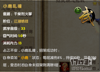 “干柴烈火掌”的架招,挂伴侣可以用红豆兑换,以前记得可以做任务直接换一套入门,还是伴侣到了一定的等级去接任务,具体是什么小编真的忘记了,不过说起这个架招和第一个介绍的“弥勒垂眉”有异曲同工之妙,为什么这么说因为这个是直接实实在在的给你减少伤害,敌人打你降低攻击伤害,具体可以叠加到多少层我不知道,还需要大家自己去体验下,但是效果还是很不错的,单挑和群战都适合,因为非常大众和直接的减伤,持续时间有点短,可能是因为这样太逆天了,若配上一些比较牛叉的内功和宝物减伤,那还得了你的对手打你估计都打不出什么伤害了。